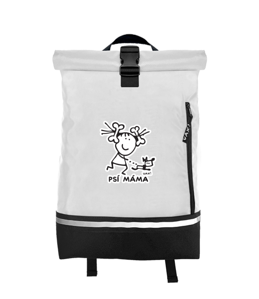 Original backpack ROLL-TOP SMALL with design 1330 PSÍ MÁMA in color WHITE