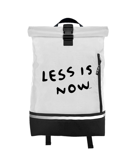 Original backpack ROLL-TOP SMALL with design 1333 LESS IS NOW in color WHITE