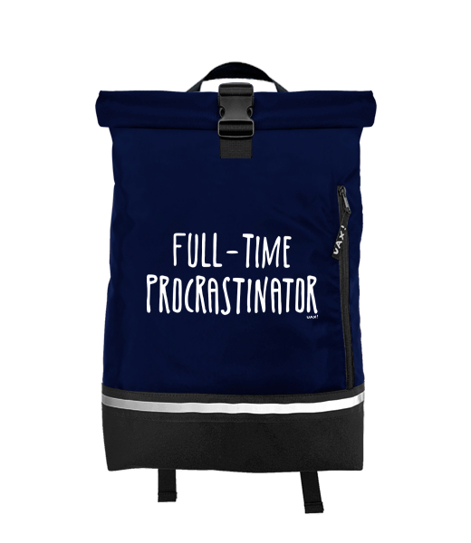 Original backpack ROLL-TOP SMALL with design 1334 FULL-TIME PROCRASTINATOR in color MIDNIGHT BLUE