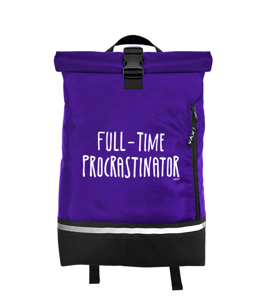 Original backpack ROLL-TOP SMALL with design 1334 FULL-TIME PROCRASTINATOR in color VIOLET