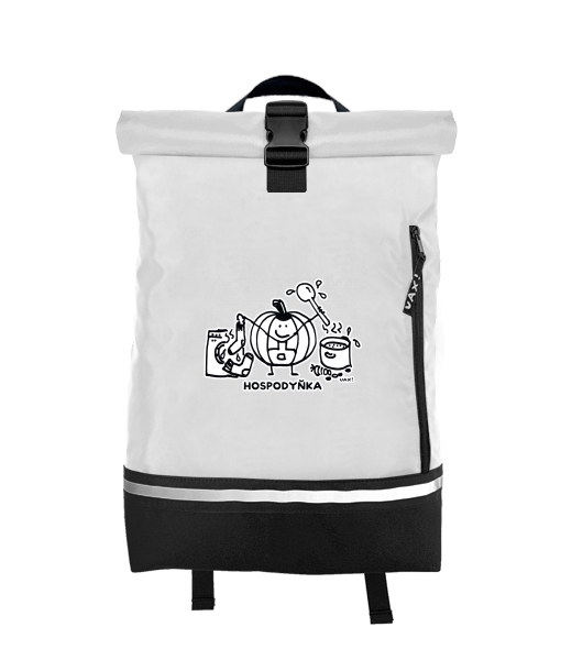 Original backpack ROLL-TOP SMALL with design 1335 HOSPODYŇKA in color WHITE