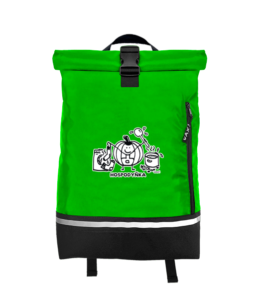 Original backpack ROLL-TOP SMALL with design 1335 HOSPODYŇKA in color BRIGHT GREEN