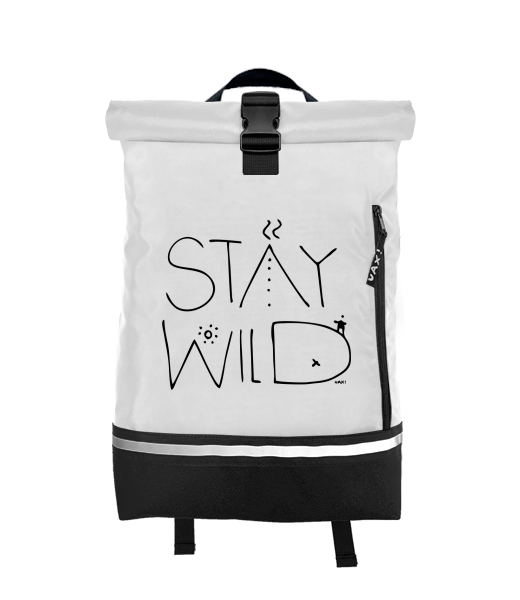 Original backpack ROLL-TOP SMALL with design 1337 STAY WILD in color WHITE