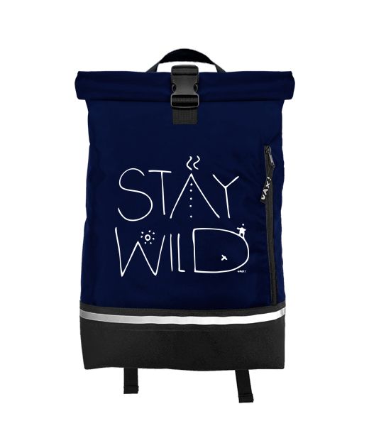 Original backpack ROLL-TOP SMALL with design 1337 STAY WILD in color MIDNIGHT BLUE