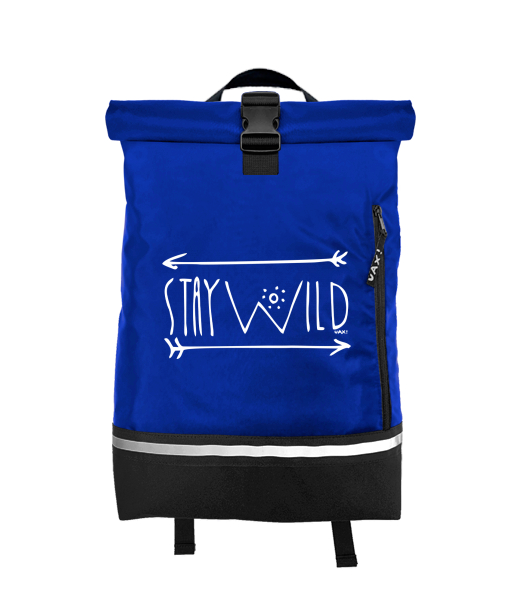 Original backpack ROLL-TOP SMALL with design 1338 STAY WILD 2 in color CLASSIC BLUE