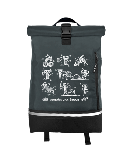 We make sustainable UAX clothing! - hand sewn in the Czech Republic uaxAccessories uaxAll productsPouches and backpacksBACKPACK ROLL-TOP SMALLdesign 1343 - MAKÁM JAK ŠROUB 2GREY INK