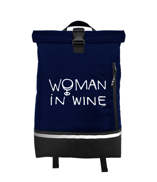 Original backpack ROLL-TOP SMALL with design 1346 WOMAN IN WINE 1 in color MIDNIGHT BLUE