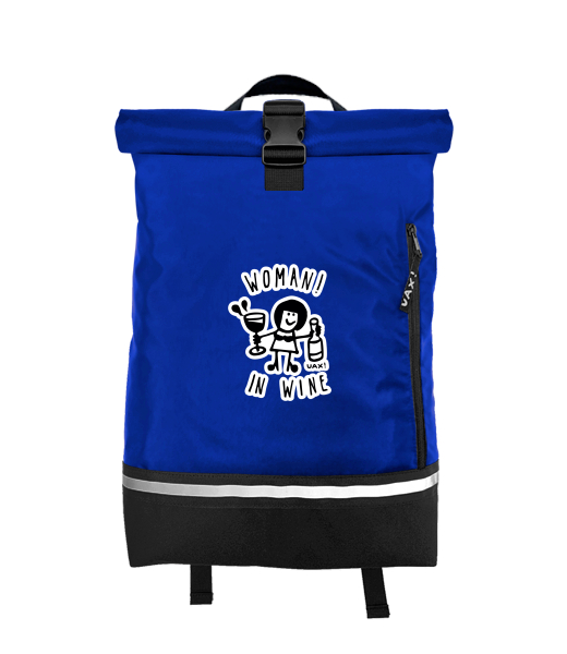 Original backpack ROLL-TOP SMALL with design 1347 WOMAN IN WINE 2 in color CLASSIC BLUE