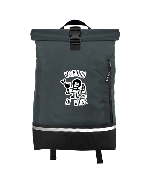 Original backpack ROLL-TOP SMALL with design 1347 WOMAN IN WINE 2 in color GREY INK
