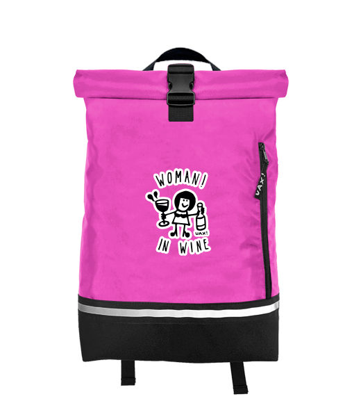 Original backpack ROLL-TOP SMALL with design 1347 WOMAN IN WINE 2 in color INDIAN LILA