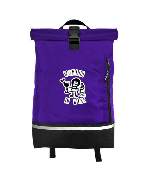 Original backpack ROLL-TOP SMALL with design 1347 WOMAN IN WINE 2 in color VIOLET