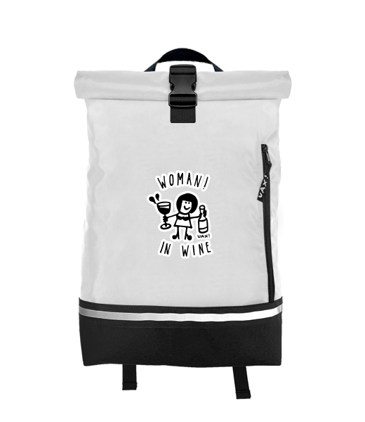 Original backpack ROLL-TOP SMALL with design 1347 WOMAN IN WINE 2 in color WHITE