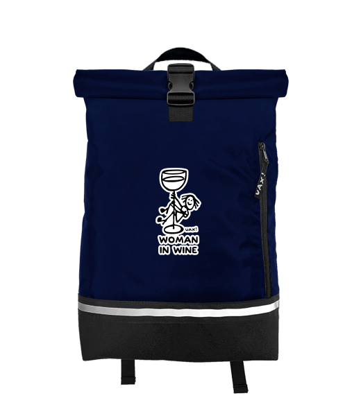 Original backpack ROLL-TOP SMALL with design 1348 WOMAN IN WINE 3 in color MIDNIGHT BLUE