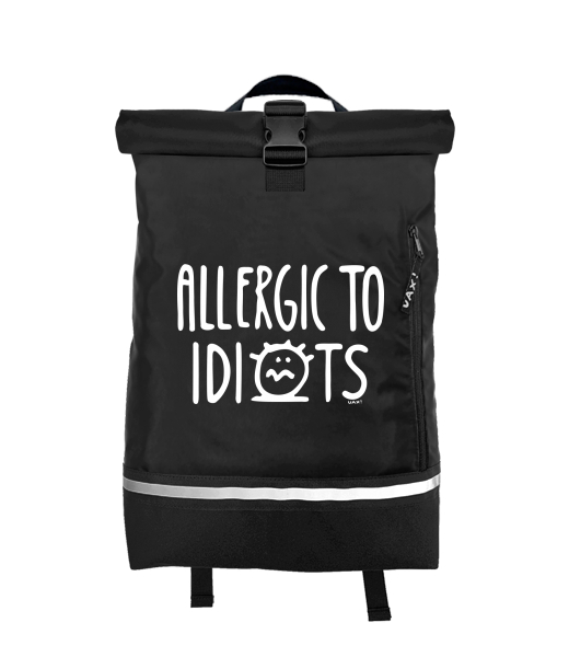 Original backpack ROLL-TOP SMALL with design 1354 ALLERGIC TO IDIOTS in color BLACK