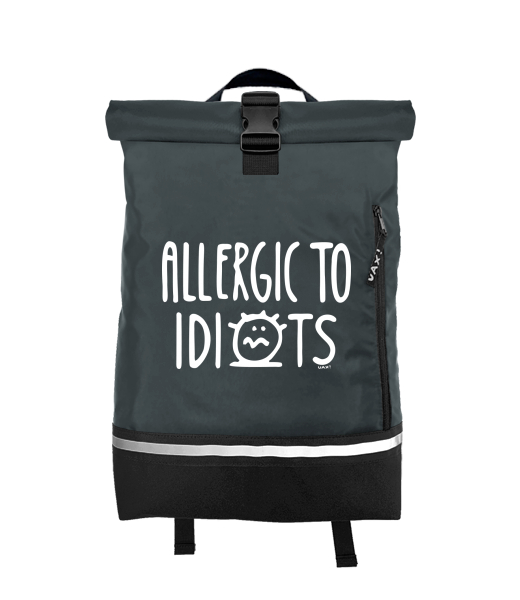 Original backpack ROLL-TOP SMALL with design 1354 ALLERGIC TO IDIOTS in color GREY INK