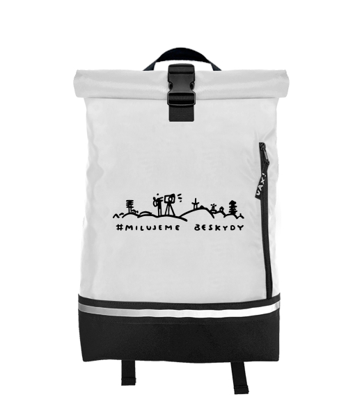 Original backpack ROLL-TOP SMALL with design 1355 MILUJEME BESKYDY 1 in color WHITE