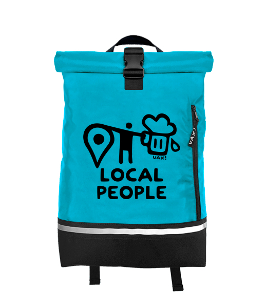 Original backpack ROLL-TOP SMALL with design 1360 LOCAL PEOPLE BIG in color BLUE ATOLL