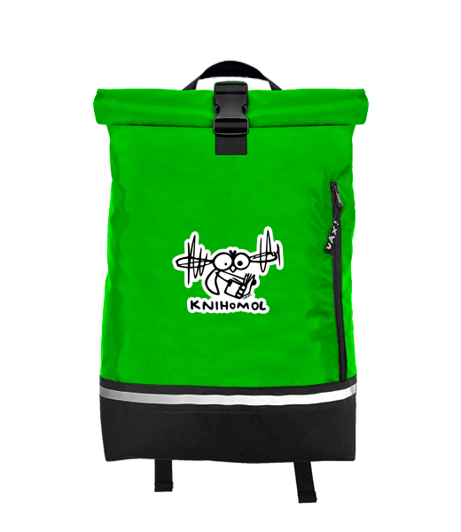 Original backpack ROLL-TOP SMALL with design 1361 KNIHOMOL in color BRIGHT GREEN