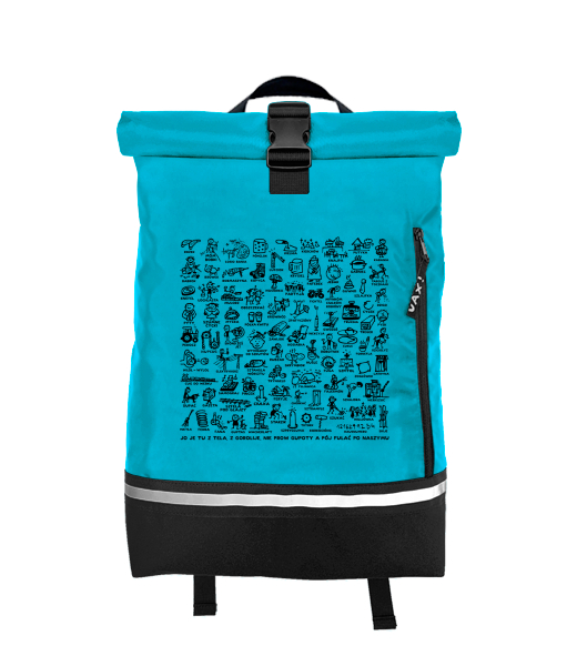 Original backpack ROLL-TOP SMALL. The upper part of the backpack can be closed with Velcro. It can be rolled up and switched on with a clip. For wearing, there is an ear and adjustable straps with safety reflective elements. The roll-top backpack has an outer pocket that can be closed with a zipper and an inside pocket that is not closable. A safety reflective tape is placed on the front of the roll-top small backpack. Mix & Match - Choose from many original prints and combine colorful colors. Color configurator! = mix your own color combination!