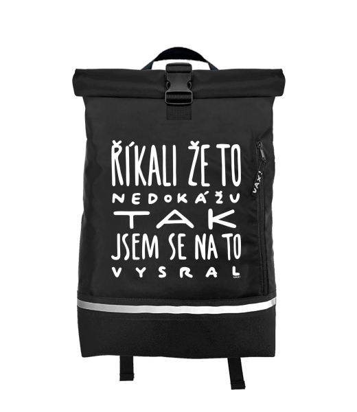 Original backpack ROLL-TOP SMALL with design 1366 ŘÍKALI ŽE TO NEDOKÁŽU TAK JSEM SE NA TO VYSRAL in color BLACK