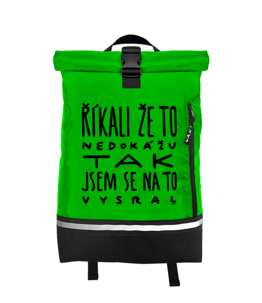 Original backpack ROLL-TOP SMALL with design 1366 ŘÍKALI ŽE TO NEDOKÁŽU TAK JSEM SE NA TO VYSRAL in color BRIGHT GREEN