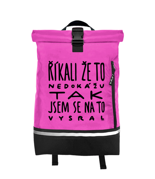 Original backpack ROLL-TOP SMALL with design 1366 ŘÍKALI ŽE TO NEDOKÁŽU TAK JSEM SE NA TO VYSRAL in color INDIAN LILA