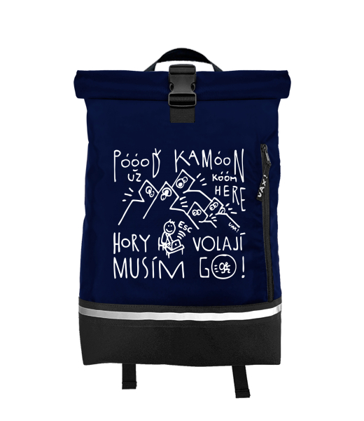 Original backpack ROLL-TOP SMALL with design 1368 POOOĎ KAMOON HORY MUSÍM JÍT GO in color MIDNIGHT BLUE