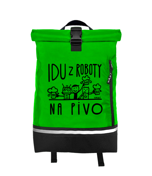 We make sustainable UAX clothing! - hand sewn in the Czech Republic uaxAccessories uaxAll productsPouches and backpacksBACKPACK ROLL-TOP SMALLdesign 1369 - IDU Z ROBOTY NA PIVOBRIGHT GREEN