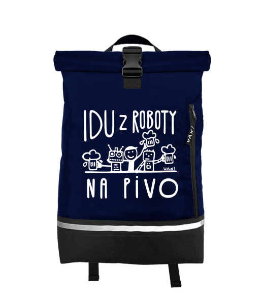 Original backpack ROLL-TOP SMALL with design 1369 IDU Z ROBOTY NA PIVO in color MIDNIGHT BLUE