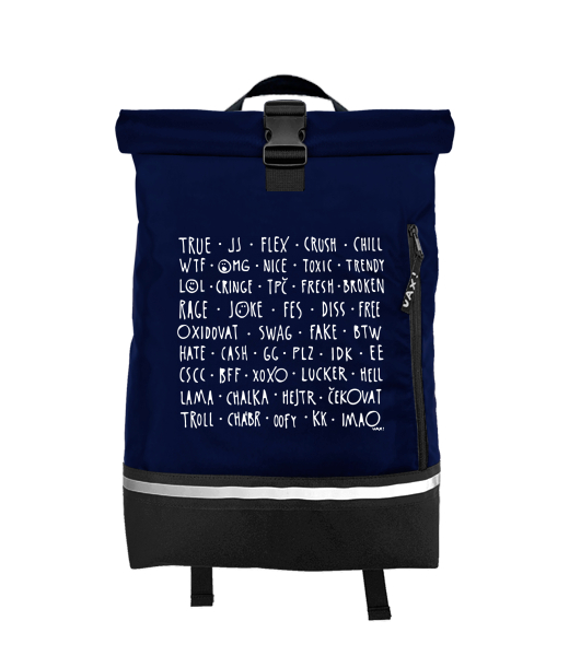 Original backpack ROLL-TOP SMALL with design 1372 DĚTSKÝ SLANG in color MIDNIGHT BLUE