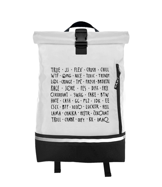 Original backpack ROLL-TOP SMALL with design 1372 DĚTSKÝ SLANG in color WHITE