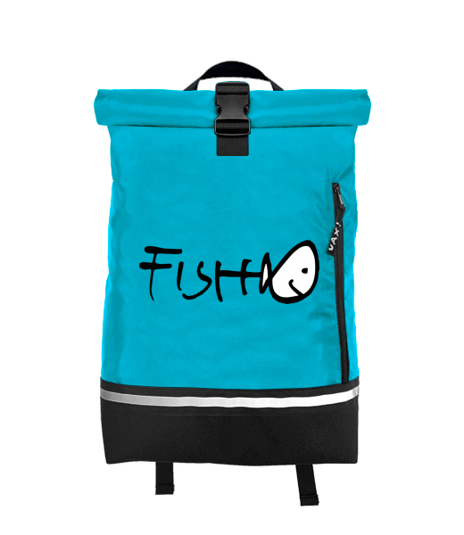 Original backpack ROLL-TOP SMALL with design 357 FISH in color BLUE ATOLL