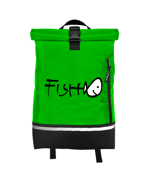 Original backpack ROLL-TOP SMALL with design 357 FISH in color BRIGHT GREEN