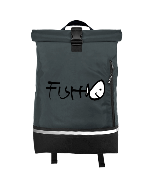 Original backpack ROLL-TOP SMALL with design 357 FISH in color GREY INK