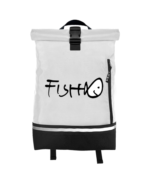 Original backpack ROLL-TOP SMALL with design 357 FISH in color WHITE