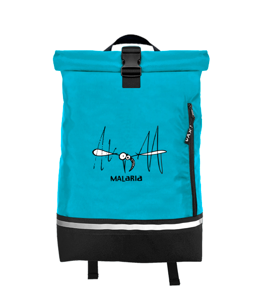 Original backpack ROLL-TOP SMALL with design 361 MALARIA in color BLUE ATOLL