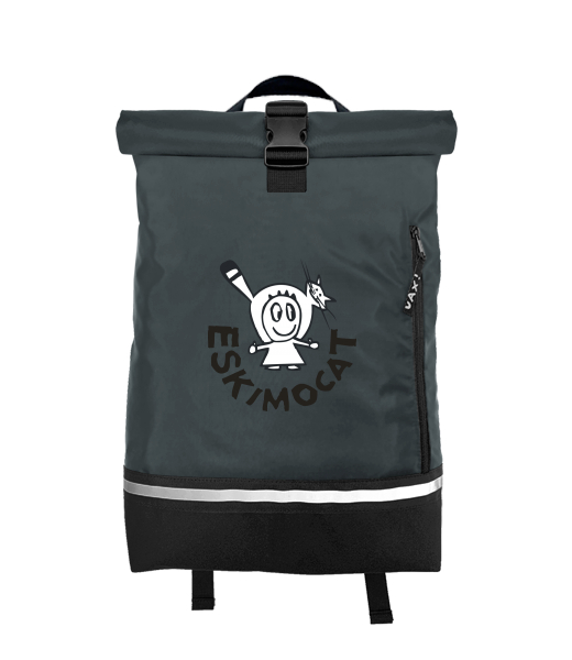 Original backpack ROLL-TOP SMALL with design 375 ESKIMOCAT in color GREY INK