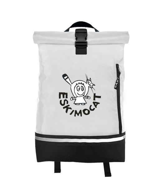 Original backpack ROLL-TOP SMALL with design 375 ESKIMOCAT in color WHITE