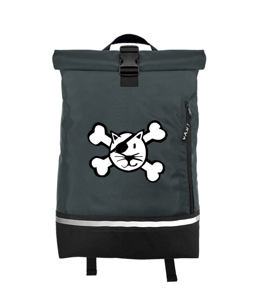 Original backpack ROLL-TOP SMALL with design 377 PUSSY in color GREY INK