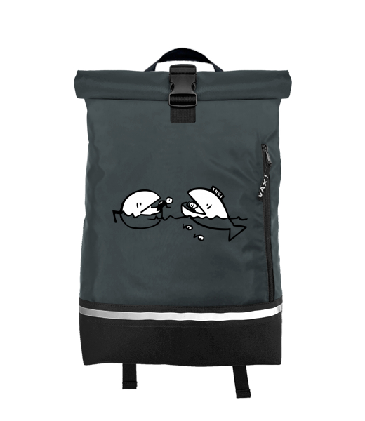 Original backpack ROLL-TOP SMALL with design 385 FISH TAXI in color GREY INK