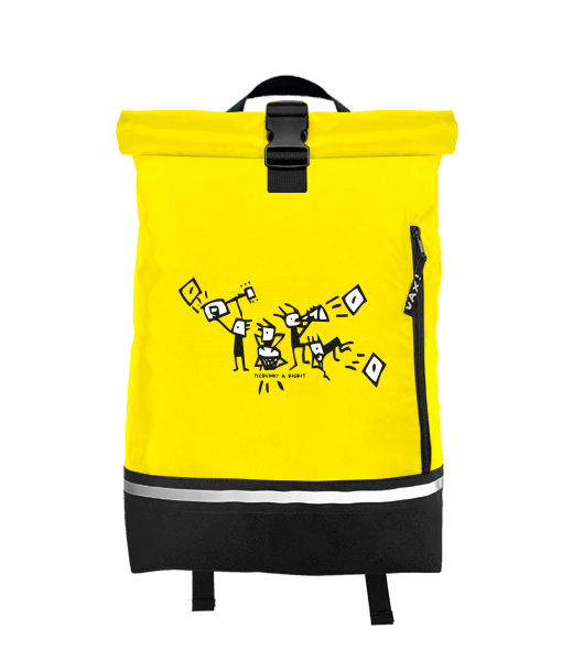 Original backpack ROLL-TOP SMALL. The upper part of the backpack can be closed with Velcro. It can be rolled up and switched on with a clip. For wearing, there is an ear and adjustable straps with safety reflective elements. The roll-top backpack has an outer pocket that can be closed with a zipper and an inside pocket that is not closable. A safety reflective tape is placed on the front of the roll-top small backpack. Mix & Match - Choose from many original prints and combine colorful colors. Color configurator! = mix your own color combination!