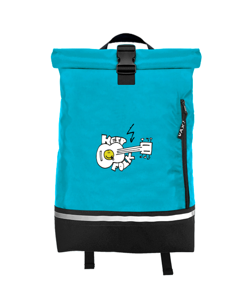Original backpack ROLL-TOP SMALL with design 441 KEEP FOLK in color BLUE ATOLL