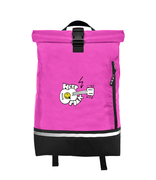 Original backpack ROLL-TOP SMALL. The upper part of the backpack can be closed with Velcro. It can be rolled up and switched on with a clip. For wearing, there is an ear and adjustable straps with safety reflective elements. The roll-top backpack has an outer pocket that can be closed with a zipper and an inside pocket that is not closable. A safety reflective tape is placed on the front of the roll-top small backpack. Mix & Match - Choose from many original prints and combine colorful colors. Color configurator! = mix your own color combination!