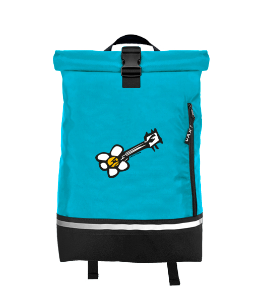Original backpack ROLL-TOP SMALL. The upper part of the backpack can be closed with Velcro. It can be rolled up and switched on with a clip. For wearing, there is an ear and adjustable straps with safety reflective elements. The roll-top backpack has an outer pocket that can be closed with a zipper and an inside pocket that is not closable. A safety reflective tape is placed on the front of the roll-top small backpack. Mix & Match - Choose from many original prints and combine colorful colors. Color configurator! = mix your own color combination!
