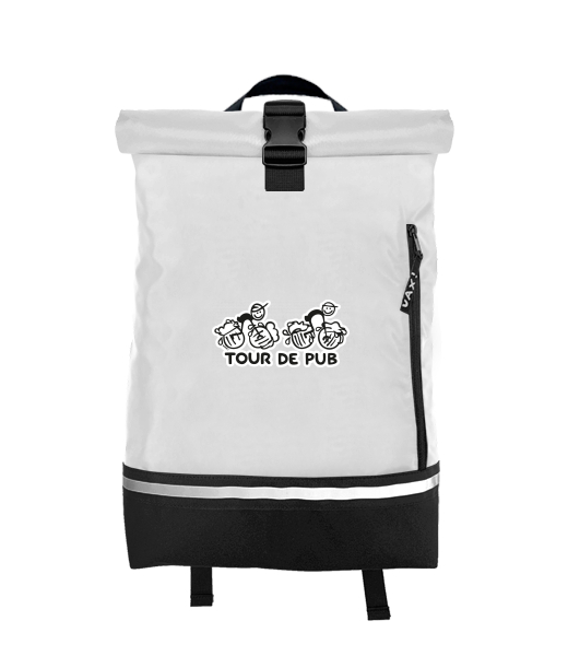 Original backpack ROLL-TOP SMALL with design 513 TOUR DE PUB in color WHITE