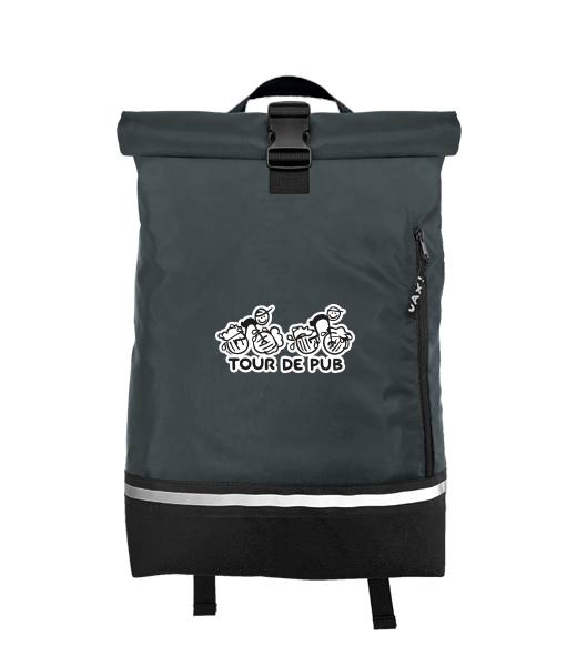 Original backpack ROLL-TOP SMALL with design 513 TOUR DE PUB in color GREY INK