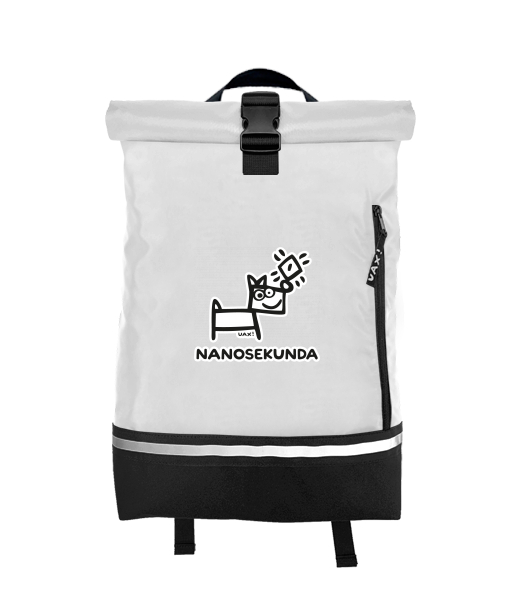 Original backpack ROLL-TOP SMALL with design 516 NANOSEKUNDA in color WHITE