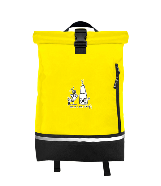Original backpack ROLL-TOP SMALL. The upper part of the backpack can be closed with Velcro. It can be rolled up and switched on with a clip. For wearing, there is an ear and adjustable straps with safety reflective elements. The roll-top backpack has an outer pocket that can be closed with a zipper and an inside pocket that is not closable. A safety reflective tape is placed on the front of the roll-top small backpack. Mix & Match - Choose from many original prints and combine colorful colors. Color configurator! = mix your own color combination!