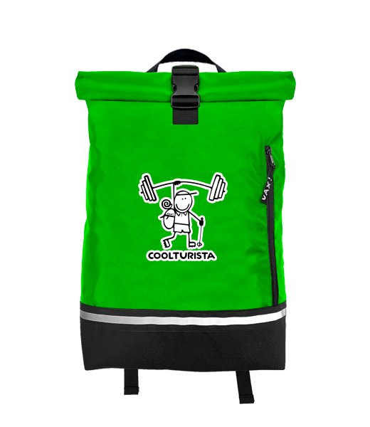 Original backpack ROLL-TOP SMALL with design 577 COOLTURISTA in color BRIGHT GREEN