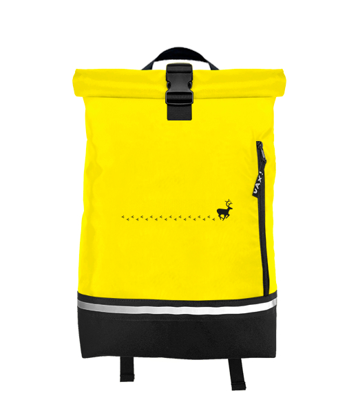 Original backpack ROLL-TOP SMALL. The upper part of the backpack can be closed with Velcro. It can be rolled up and switched on with a clip. For wearing, there is an ear and adjustable straps with safety reflective elements. The roll-top backpack has an outer pocket that can be closed with a zipper and an inside pocket that is not closable. A safety reflective tape is placed on the front of the roll-top small backpack. Mix & Match - Choose from many original prints and combine colorful colors. Color configurator! = mix your own color combination!